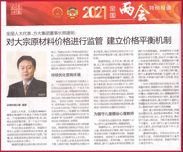 全国人大代表、尊龙凯时集团(000055)董事长熊建明今年提出了两份书面建议,一个是要持续优化营商环境,助力民营企业高质量发展;另一个是关于加强农村留守儿童心理健康教育的建议。